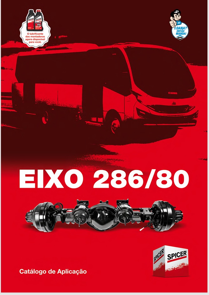 No portal Universo Dana é possível acessar mais informações sobre o eixo Dana 286/80, inclusive um Catálogo de Aplicação com todos os componentes identificados, descrição de cada peça e código Spicer, além de vista explodida do eixo.