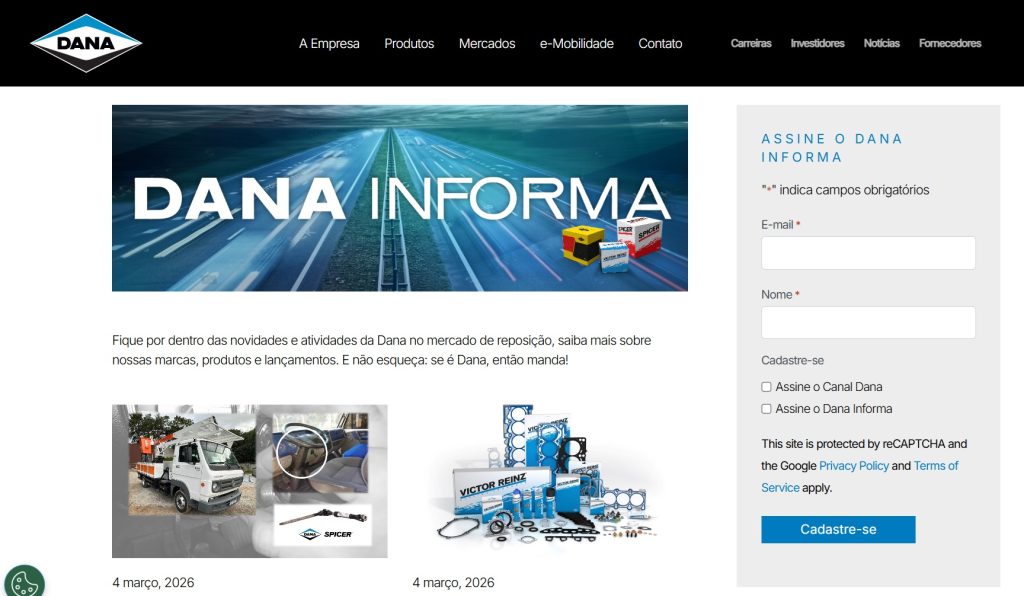 E claro o Ache Fácil Dana, o ponto de encontro do profissional do aftermarket, onde você encontra mais de 20 caminhos para todos os conteúdos Albarus, Spicer, Victor Reinz, Dana e inclusive o botão para receber gratuita e mensalmente as edições das próximas edições do Dana Informa.