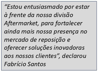 Desde o final de setembro, a Divisão Aftermarket Dana na América do Sul conta com a liderança do engenheiro e administrador Fabricio Santos, executivo com mais de duas décadas de experiência no setor automotivo.