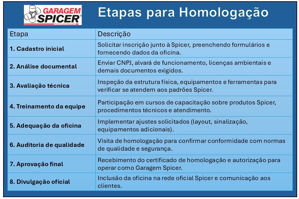 Para obter mais informações sobre o Garagem Spicer ou conhecer as empresas homologadas ou em fazer final de auditoria acesse o portal Universo Dana/Garagem Spicer.