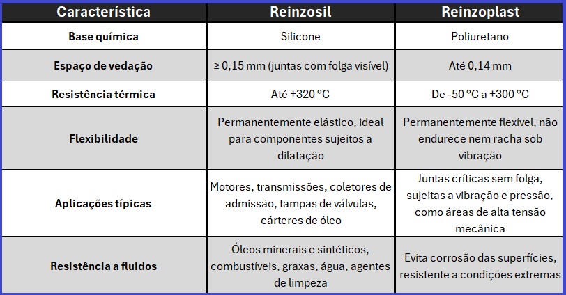 - Reinzosil é preferido porque compensa essas imperfeições e garante vedação confiável mesmo em condições severas de temperatura e vibração.