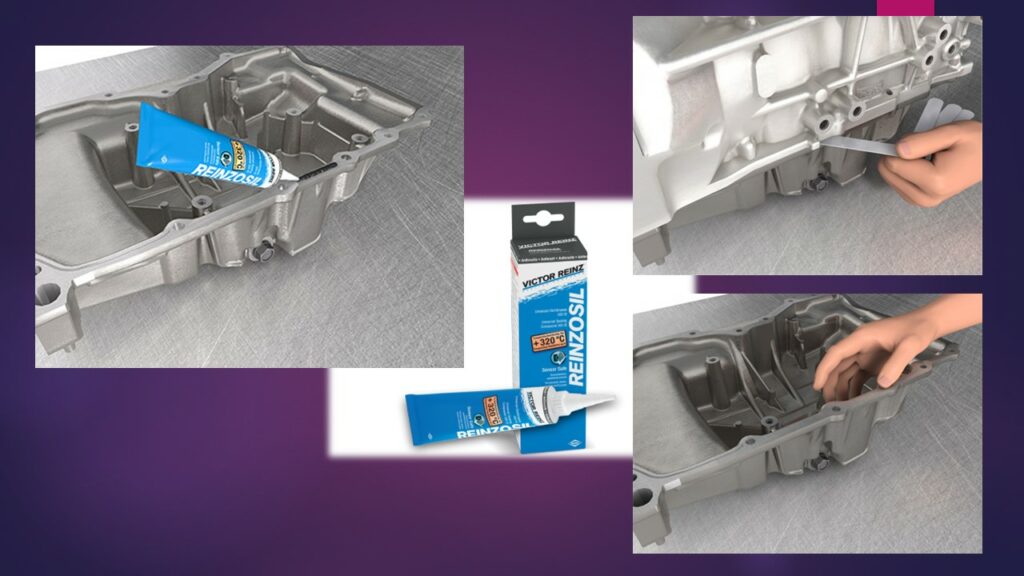Assim, para vedação do cárter, a escolha depende da folga entre as superfícies: use Reinzoplast se a folga for mínima (até 0,14 mm), e Reinzosil se houver folgas maiores (≥ 0,15 mm) ou pequenas imperfeições como riscos e arranhões.