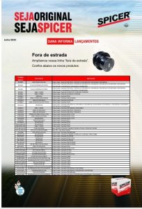 A partir de julho já estão disponíveis mais 44 novos códigos de aplicação Spicer, com Roletes, Anéis, Retentores, Pistões, Rolamentos, Kits, Coifas, Cubos de Roda, Engrenagens e até conjunto Carcaça e Satélite para serviços de manutenção e reposição em veículos, implementos e máquinas nas linhas agrícola e industrial.